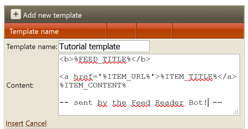 This tutorial will show you how to use templates to customize the messages sent by the Feed Reader Bot.