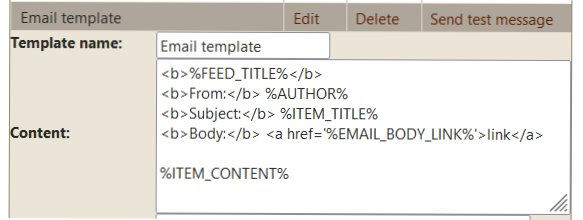 By default, you will receive the "From" (%AUTHOR%), "Subject" (%ITEM_TITLE%) and "Body" as a link (%EMAIL_BODY_LINK%) and text (%ITEM_CONTENT%).