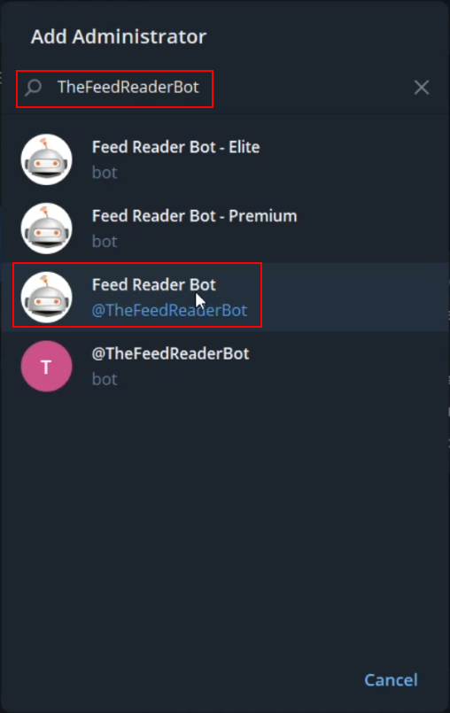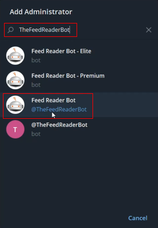 (for premium accounts, add "Premium_TheFeedReaderBot", for Elite accounts add "Elite_TheFeedReaderBot")