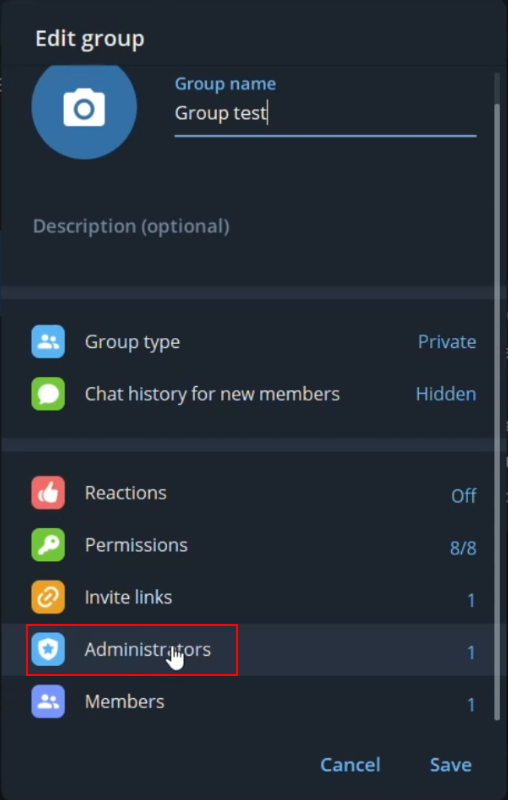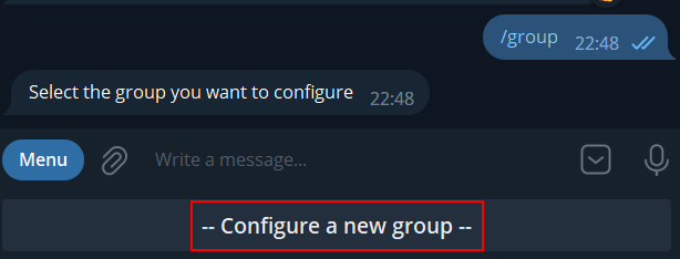 Then, go back to the bot's chat window, and send the "/group -xxxxxxxx" command (it's better to use the numerical identifier than the group's name):