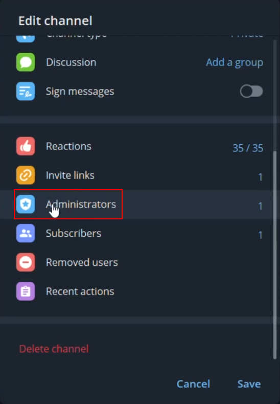 Important: Your account and your channels or groups have each their own settings and subscriptions.