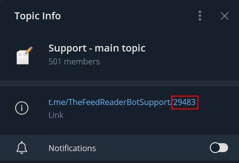 To retrieve the topic's identifier, just select your topic and click on "View topic info":
