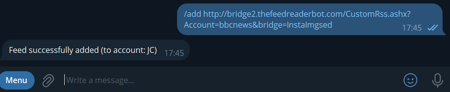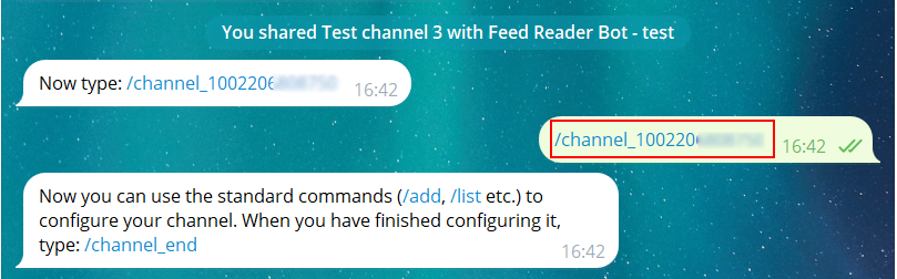 8. To generate the feed from these messages, we need the channel's identifier. To get it, forward any message from your channel to