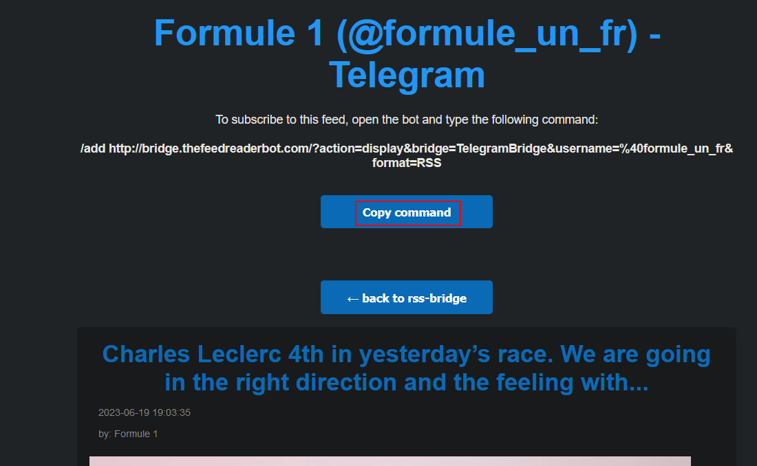 Click on "Copy command" to copy the command in memory, then paste it in the bot's chat window: