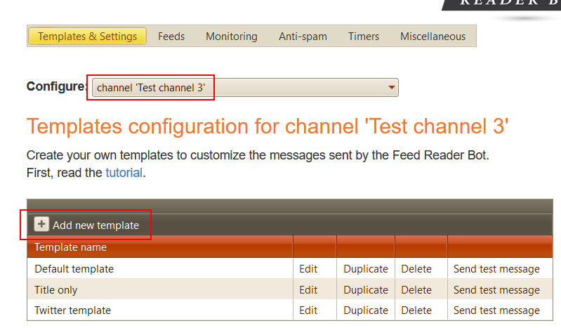 2. In the Premium or Elite bot, type /channel and select "Configure a new channel". Select your channel: